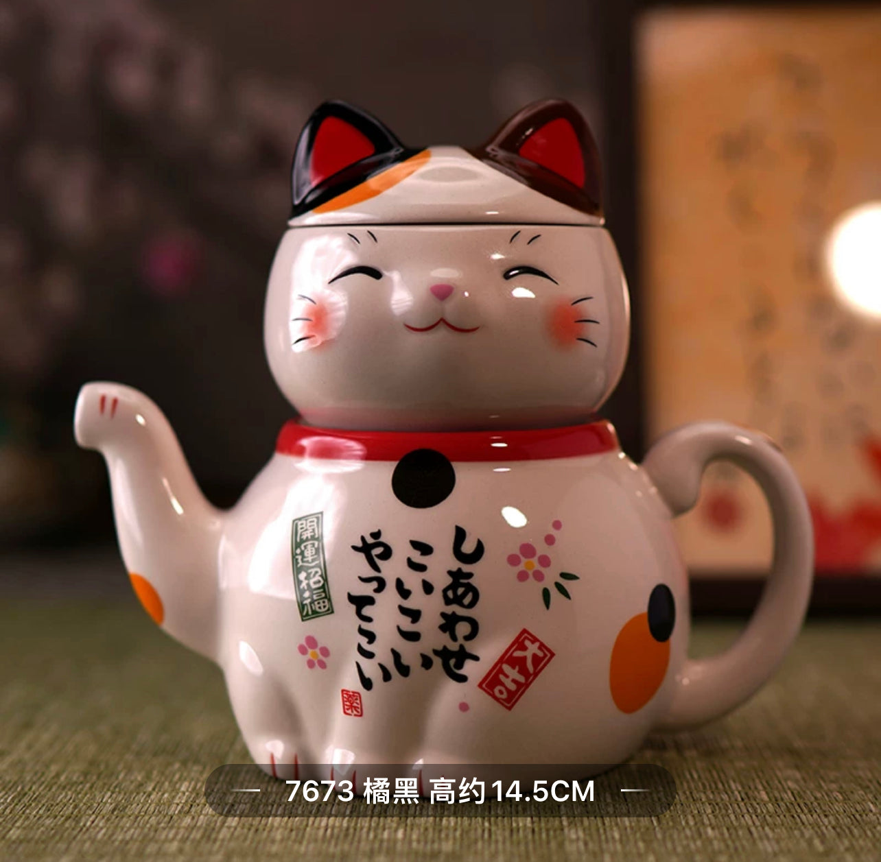 Lucky Cat Teapot , separated from top to bottom, can have independent cups, can be used as a collection or a real teapot to enjoy. Cute and practical Maneki Cat Teapot wishs you have a happy life and a good mood all the time.